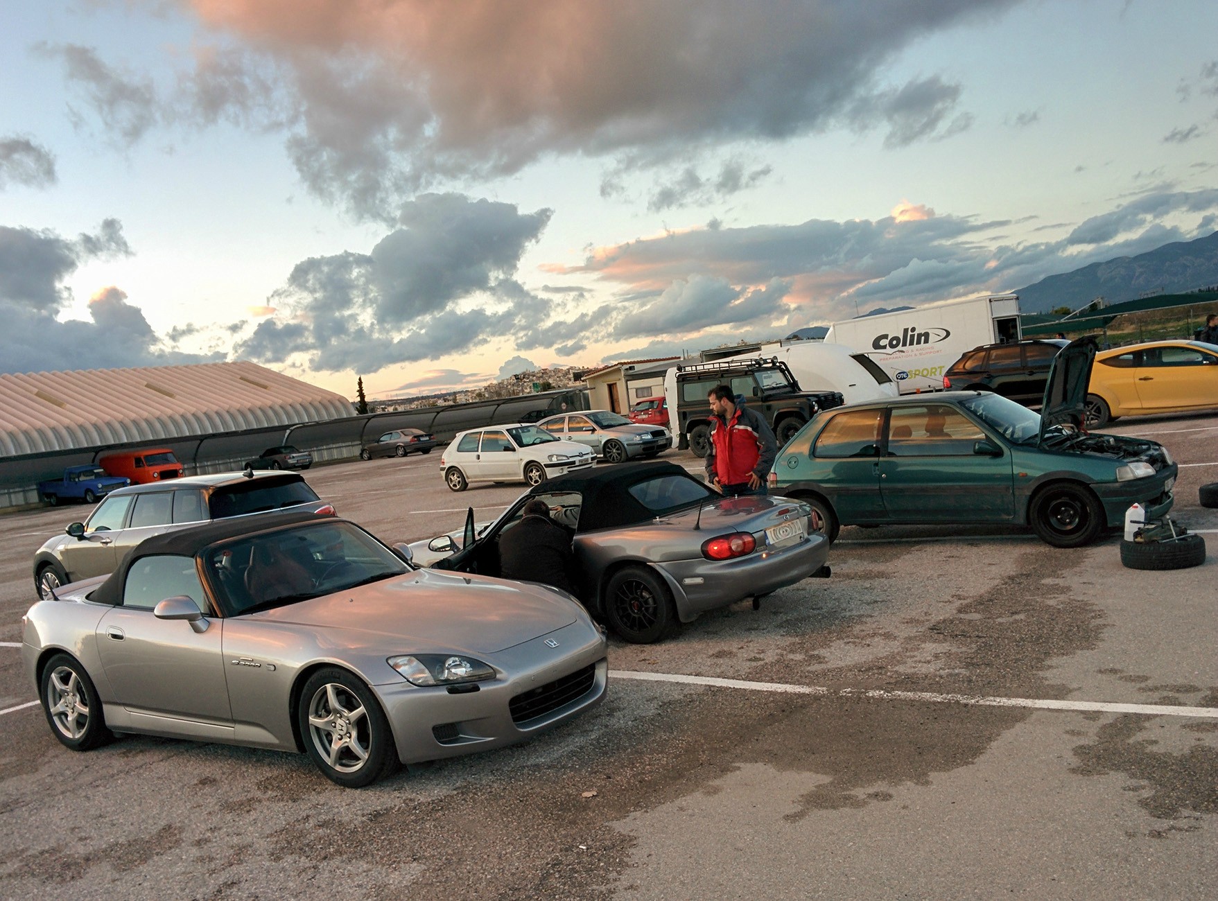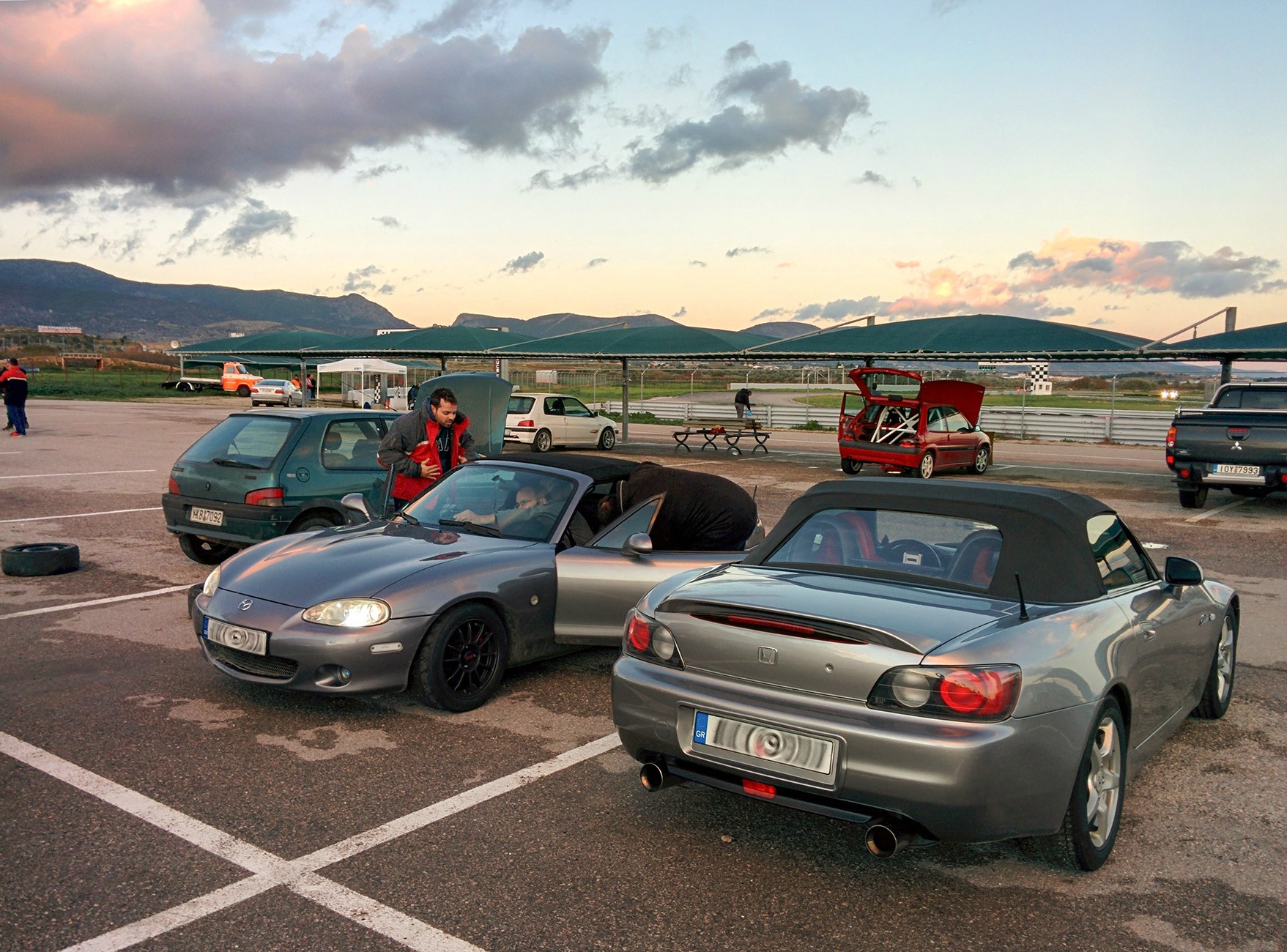 Πήγα μια βόλτα στα Μέγαρα το Σάββατο το μεσημεράκι κατά τις 3, όχι τόσο ορεξάτος λόγω του καιρού, αλλά τελικά η πίστα είχε στεγνώσει και είχε μόνο υγρασίες σε κάποια σημεία της. Ωραία παρέα, λίγα αυτοκίνητα εκείνη τη στιγμή, γιατί οι περισσότεροι είχαν ξενερώσει λόγω βροχής νωρίτερα και έφυγαν και περίπου 2 ώρες διαθέσιμες από μεριάς ήλιου... Τέλεια δηλαδή! Το αυτοκίνητο το έχω περίπου 10 μέρες στα χέρια μου και δεν το έχω οδηγήσει παρά ελάχιστα λόγω έλλειψης χρόνου. Είναι ένα s2k 2002 μοντέλο, με εργοστασιακή ανάρτηση και ελατήρια χαμηλώματος, λάστιχα Michelin Primacy του 2007 μπροστά και κάτι Westlake (ναι, καλά διαβάσατε, υπάρχει τέτοια εταιρία) του 2009 πίσω, στις εργοστασιακές 16άρες, καθώς και αγνώστου ταυτότητας τακάκια μπρος-πίσω. Σίγουρα δεν είναι εργοστασιακά Honda, αλλά όποιο φτηνιάρικο αντικατάστασης βρήκε εύκαιρο ο προηγούμενος ιδιοκτήτης. Τέλος, να πω ότι έχω ελάχιστη εμπειρία από Μέγαρα, οπότε ο συνδυασμός άγνωστου αυτοκινήτου με σχεδόν άγνωστη πίστα, δεν βοηθάει ιδιαίτερα.