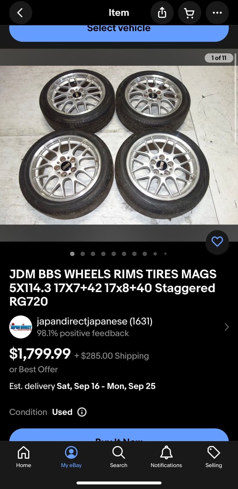 BBS JDM Wheels Staggered RG720 5x114.3 17x7+42 Front and 17x8+40 Rear - $1400 Tein Flex Z Coilovers - $640 - SOLD