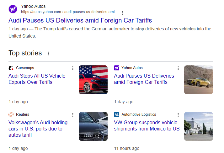 Audi and VW have already paused all shipments to the US. Any cars that have arrived are being held in ports and not released to dealerships.