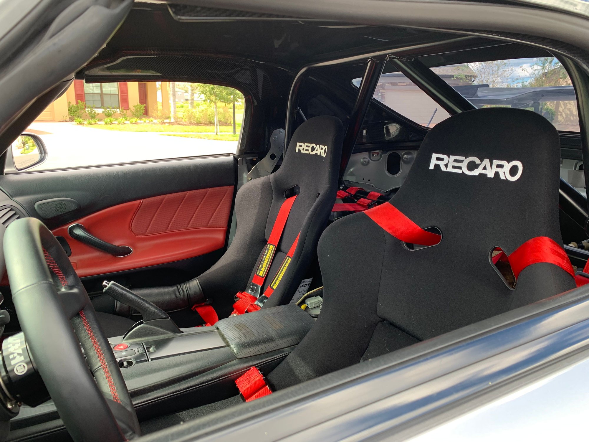 Interior: Recaro Pole Position (driver and passenger) Schroth 6 point Harness in for Hans Device in Red (driver and passenger) Personal Steering wheel (Black leather with red stitching) Bells Hub and quick disconnect Rockstar Garage double diagonal roll bar Rockstar Garage Harness bar BuddyClub Super low rails (driver and passenger)