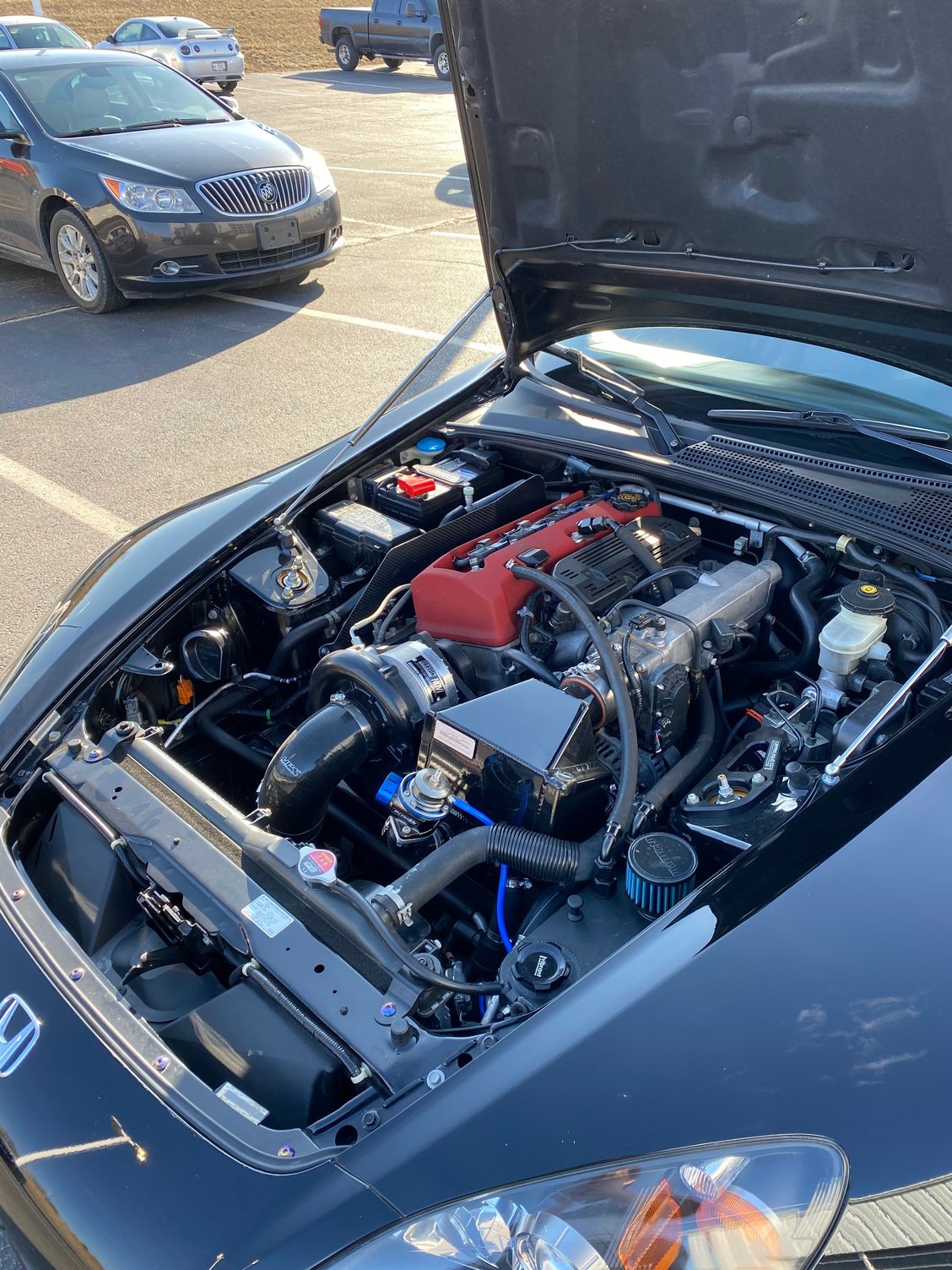 Intake plummed to pass front bumper w/ wet sock, fake vent cut out (Clear was peeling)