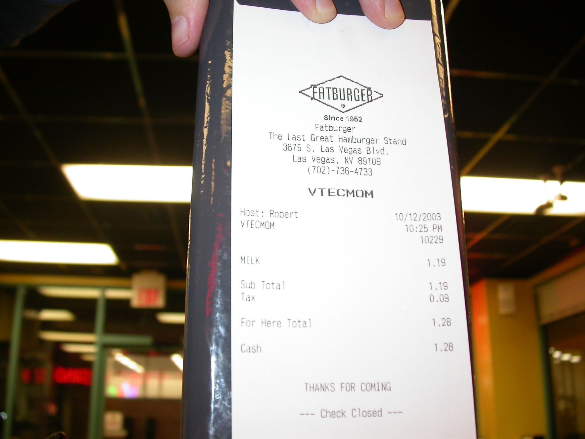 So if you have never been to a FATBURGER well when you place your order they ask your name and they print it on your reciept! We realized after the fact what we SHOULD have said for Jameseys order! So Mom went and ordered again just to get it!