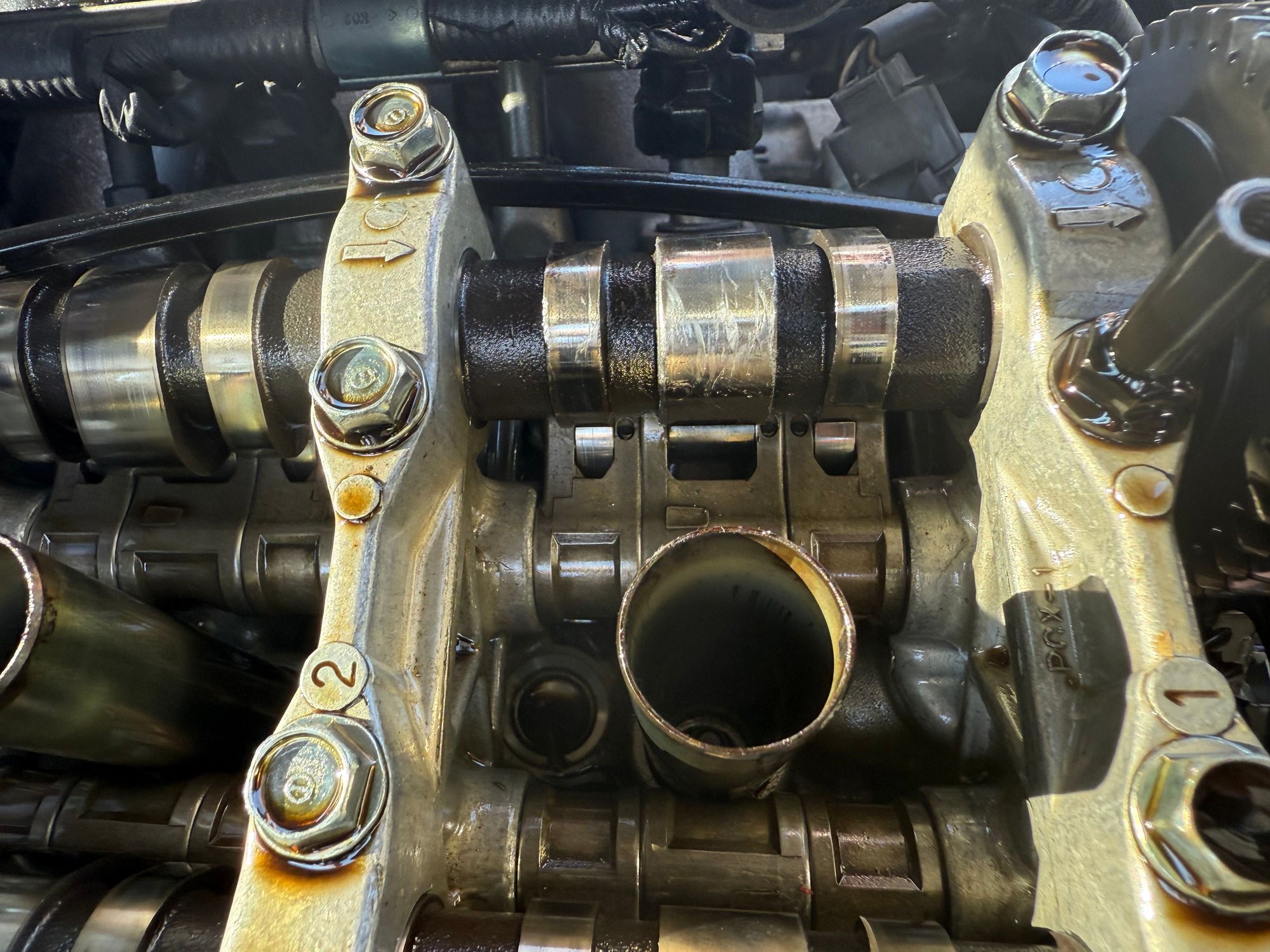 Revved car through an underpass. Just barely held at redline. Heard a clunk sound. Then watched lots of smoke fly through my exhaust. Valve cover had hole punched in it. Pulled valve cover. Cam was scratched up. I believe a needle bearing under the cam blew into two pieces. Used a scope to check each valve, so far it looks good. I plan on pulling the top end today so see the extent of the engine. If only the top end, is it work rebuilding it. I know a trusted rebuilder in my area.