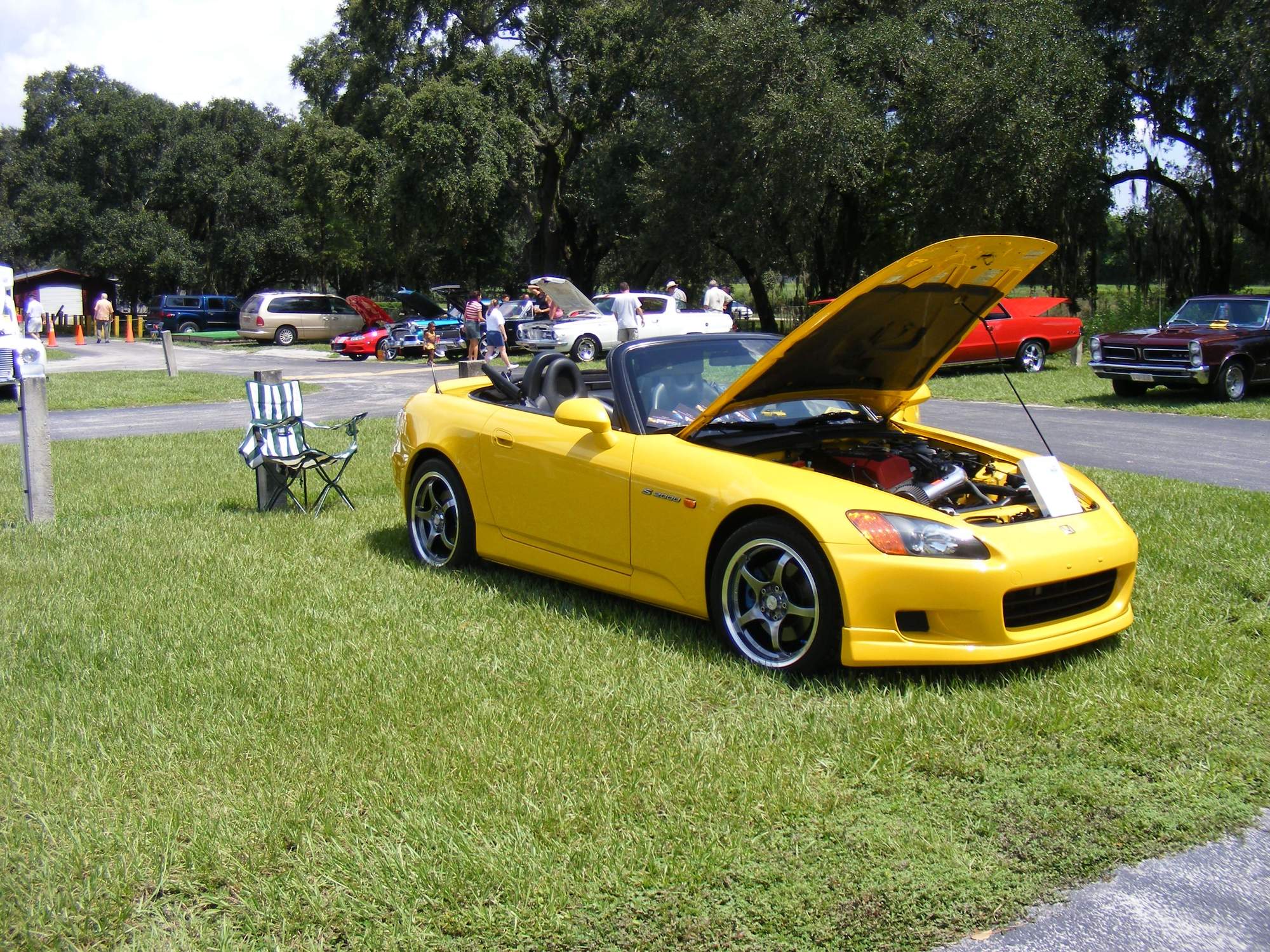 I went to the Big Top car show at the Big Top Flea Market in Tampa. It turned out to be a real hot day. Interesting collection of cars from 40s & 50s classics, 60s & 70s muscle to modern Corvettes and Nissan Zs and me and my S. I do think it helped to be the brightest color in the bunch.