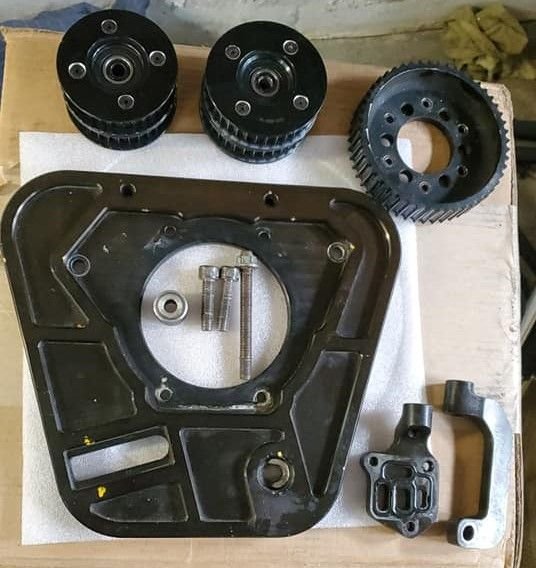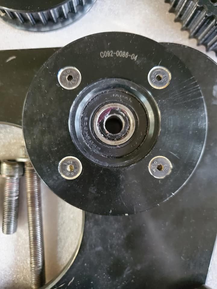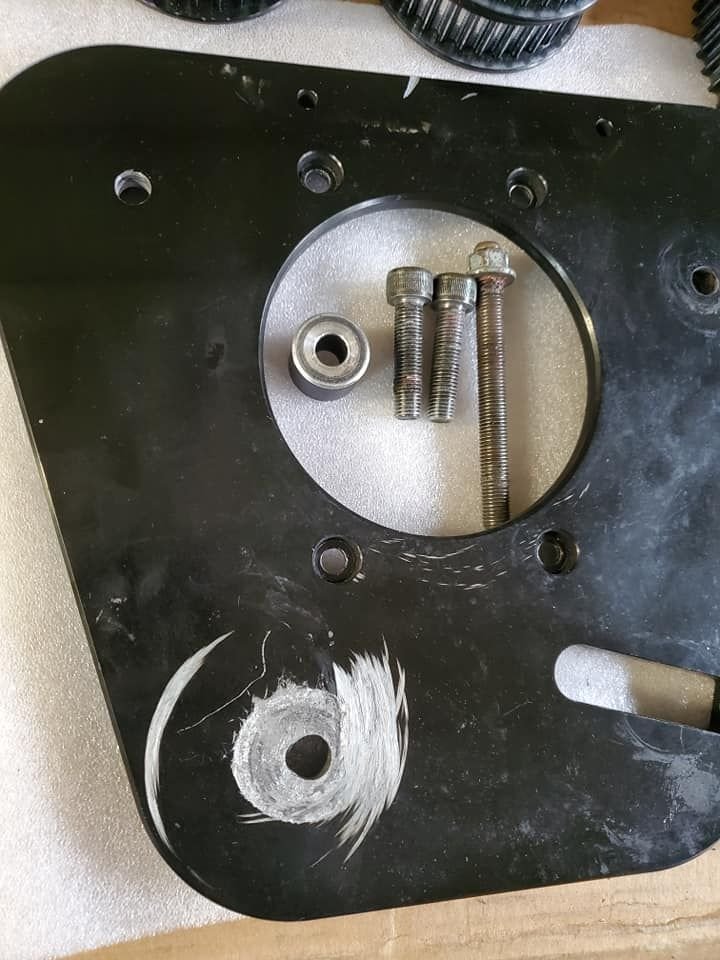 Main drive plate damaged -scuffed and hole for idler stud stretched, see 2nd picture below. Does not include tensioner slide, or bolt.