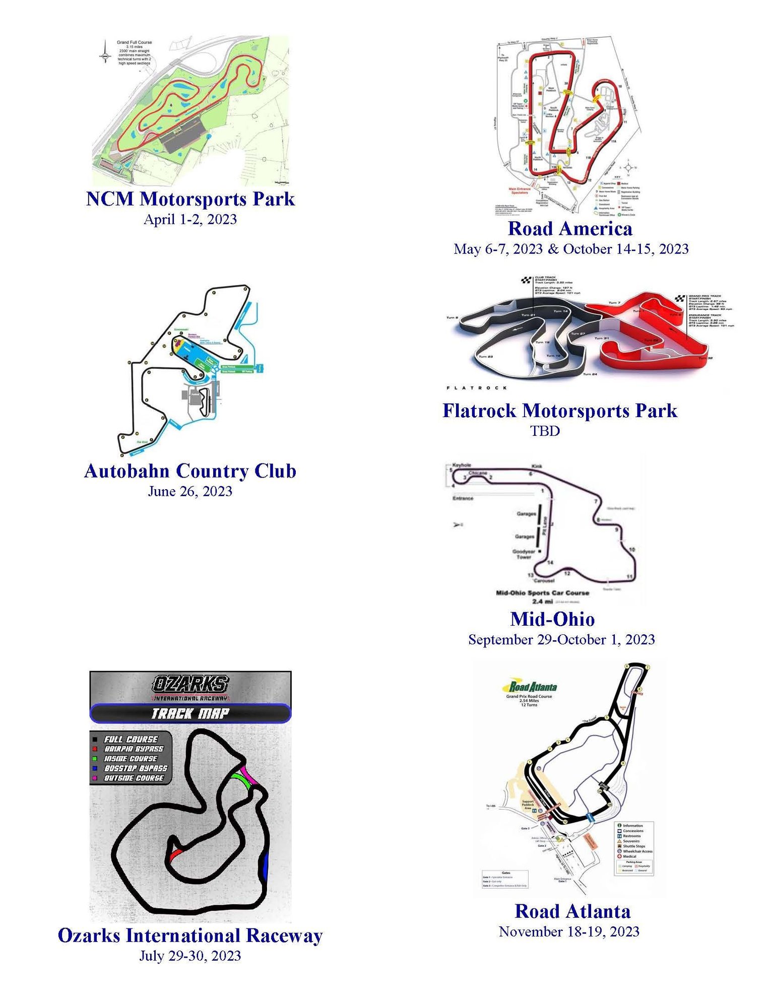 Below is MVP Track Time’s 2023 schedule, subject to possible revisions as the year progresses.