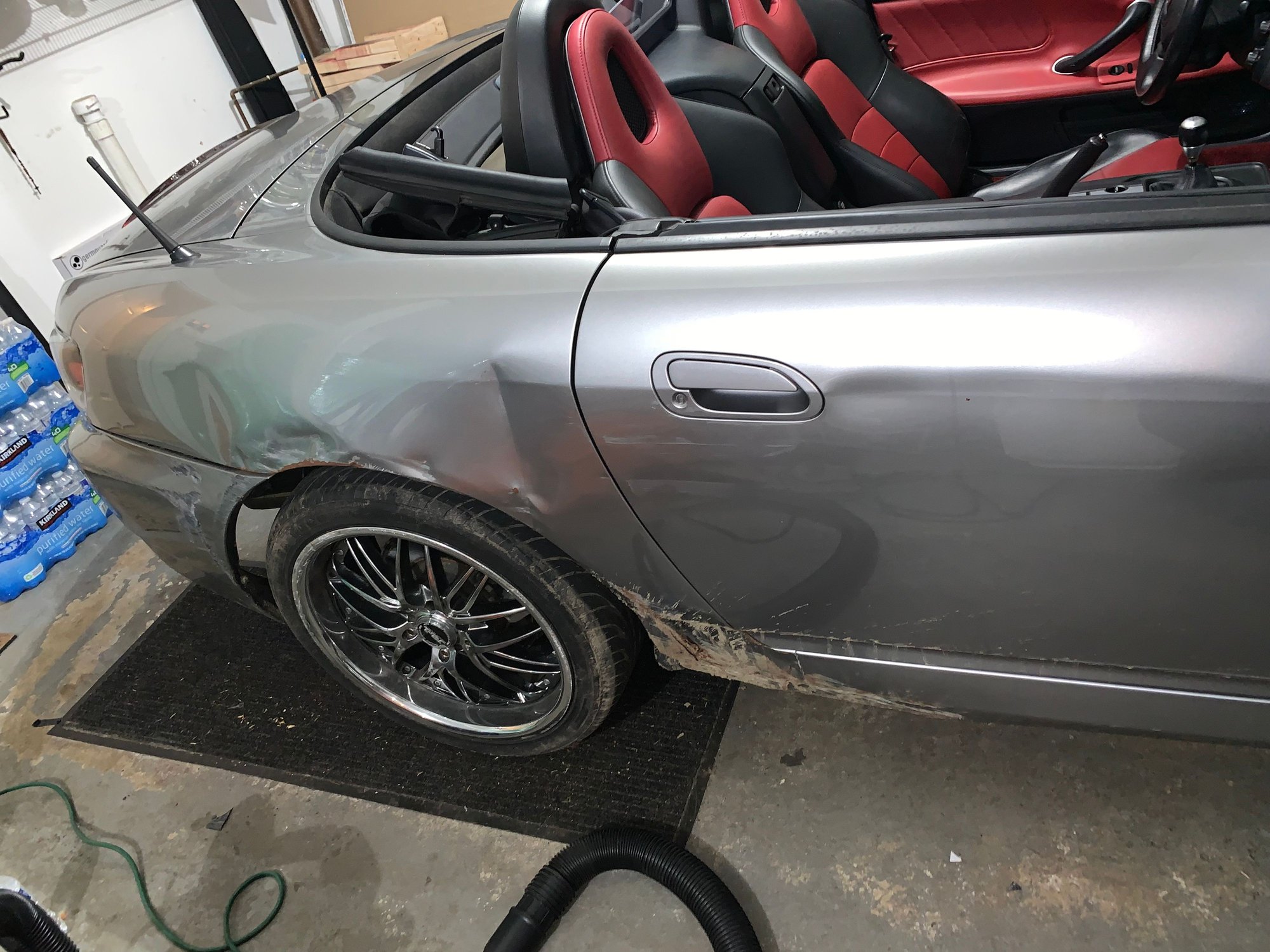 Its an 05 Silverstone with red and black interior with 31k original miles and a salvage title. Pulled the carfax and the car only has this one accident and no frame damage nor airbags deployed and has true mileage. All panels are original with matching vins, haven’t checked engine and trans because it’s a pain but I assume they are. Car was bought back in 2015 by an older gentlemen where he actually purchased 3 S2K’s at once and never registered any. The other two are yellow with black interior but were in really bad shape having sat outside for 4 years and no love. The Silverstone was kept in the garage and from the pics you can be the judge.