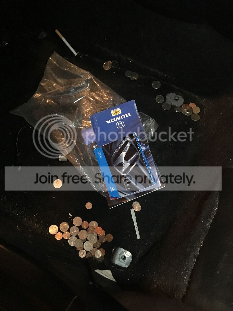 Pulled the seats and started detailing the interior. The previous owner was kind enough to give me 2 gallons of gas in spare change under the seat! And while I am sure he didn't smoke in the car, I had a feeling he smoked Marboro based on the steering wheel and armrest smell... sure enough.