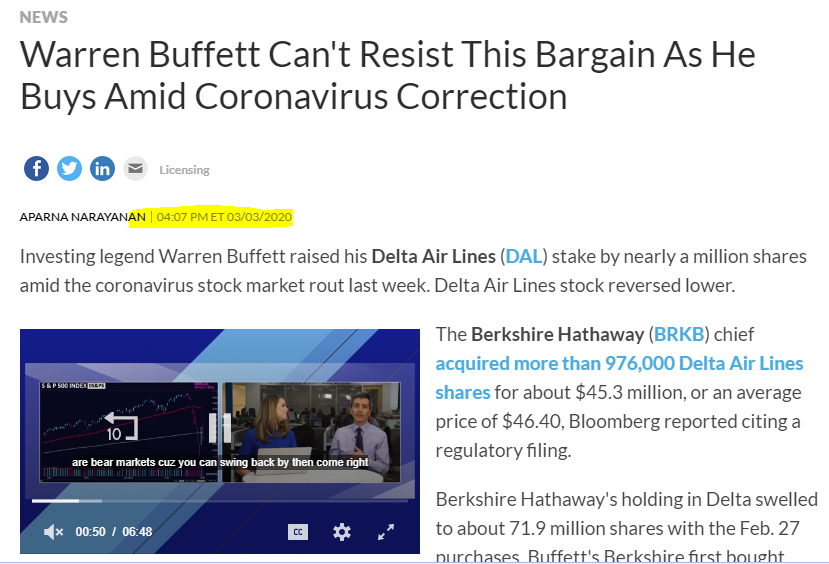 Buffet on the sidelines raising cash. Currently Berkshire Hathaway has 128 billion cash on hand, and made very recent moves to raise even more cash, as shown above with airline stock sales, and this article selling 5 year notes. Buffet is not t in this market... https://www.nasdaq.com/articles/here...ket-2020-03-31