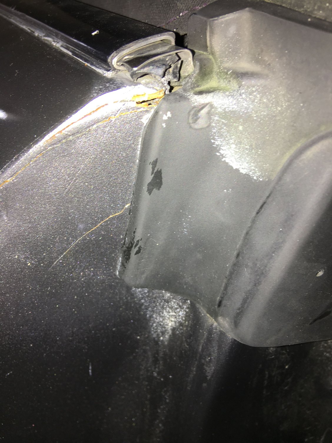 hmm looks like bad repair previously and it started to rust thru... it needs to be stripped down to metal, cut out and welded.