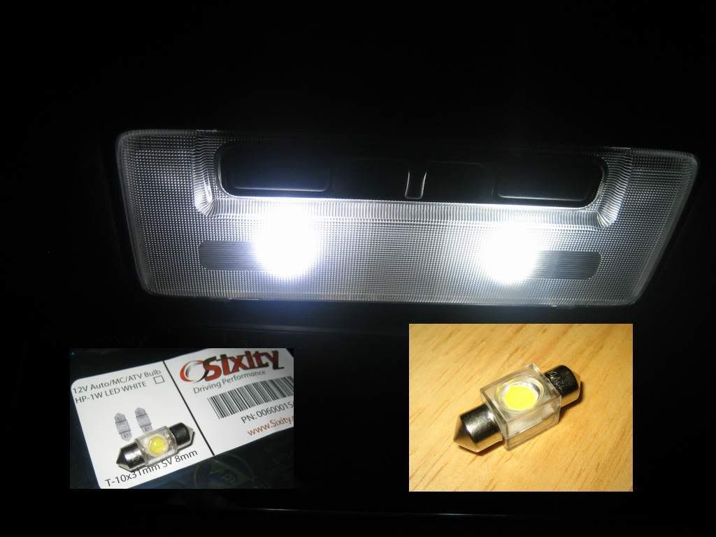 I still highly recommend the LED "board" lights. I'm sure that there's some variation in performance/reliability from manufacturer to manufacturer but with 6 bright LED's on a board and adapters to cover most socket types you can use the same LED board light for the dome/map, trunk, and license plate locations. The ones I have are much brighter than stock and very white.