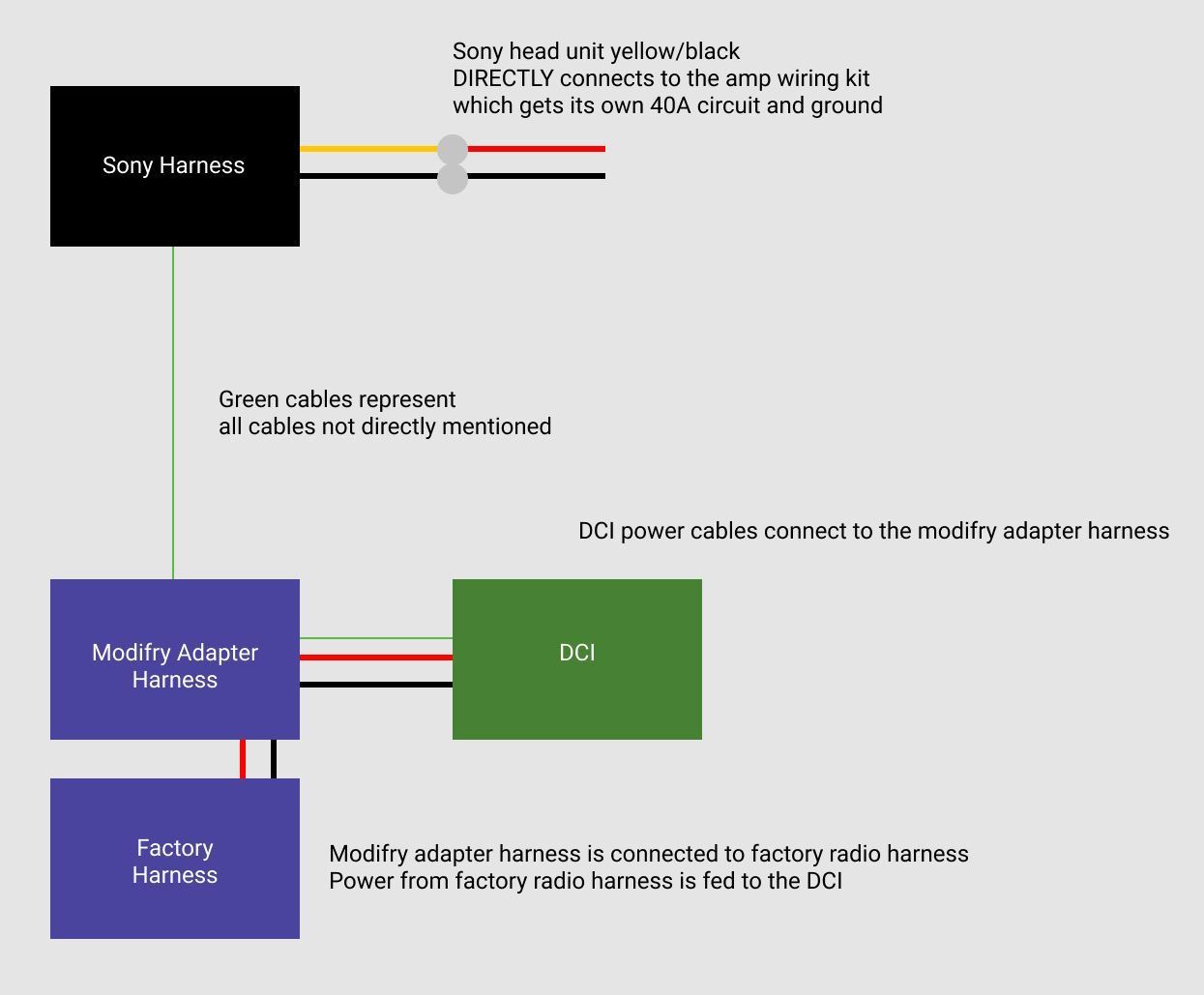 Cool, thanks.. Yeah, I already have the 4 DCI wires connected to the Modifry harness, so I won’t need to make any connection. The ‘splice for DCI” comment in the image was meant to show the existing connection made by Modifry.