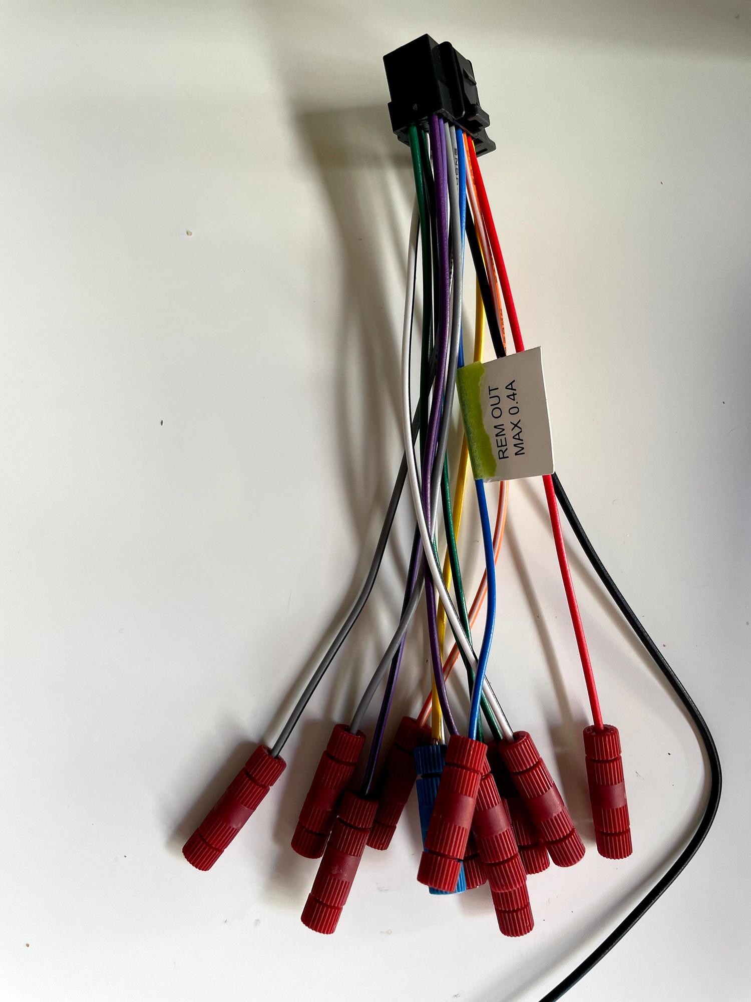 Here, I've temporarily wired up the yellow/black power cables to the harness (even though I'll be using the more robust Crutchfield 12AWG amp wiring kit with thicker cables).