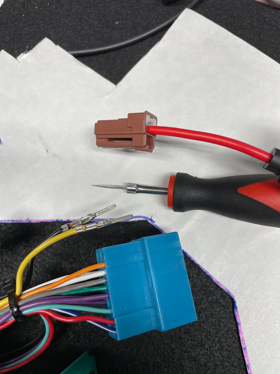 Given this, we want to wire the yellow cable on the head unit harness to the constant 40A fuse in the driver's side footwell fusebox.