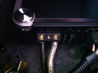 The main power lead goes directly to the battery via a fuse. The ground is short and terminates near the amp. Jumping the remote lead to the main power causes the amp's light to turn on briefly, then go out. The main fuse appears to be good.