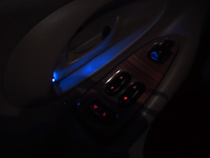 I haven't tried lighting the window buttons up, since I know where they are by feel. However, I did add a light into the interior door latch wells so that my passengers can find their way out of the car. I put a single red LED in each pull handle (I installed on on each side for symmetry.)