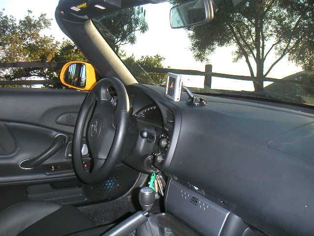 Like many, I really want useful Nav in my S2000. So I researched on the web (including reading every thread here), decided not to cut up the dash, finally just went to Best Buy and found a solution that I didn't expect. I bought the Garmin Nuvi 350 for $800 and it's great! I thought that the 3.5" screen would be too small but it's not. I mounted it on the dash so that the screen is only an inch or so from my right hand. It does not obstruct any view of the road. The mount works with adhesive and seems really tight. Eventually I'll get it mounted permanently when I get the power cord installed. When the 12v power cord is installed, the unit will turn on when the ignition is on. The unit has an audio output so your guidance can plug into your stereo if you prefer. It also has an mp3 player and accepts SD cards for that. Unfortunately the audio output is a seperate 3.5mm plug which would have to be plugged in each time I put the thing in it's cradle. I may pass on this option. It's a great performer. Satellite aquisition is super fast and it even worked inside my house. Menus are simplest I've ever seen. It doesn't even come with real instructions (available on line) but I didn't need them. The install looks great from the drivers seat (most important view) and not too cumbersome from other angles. I will attach a pic as soon as I figure out how. I'm still a newbie, owning my S2000 three days now!