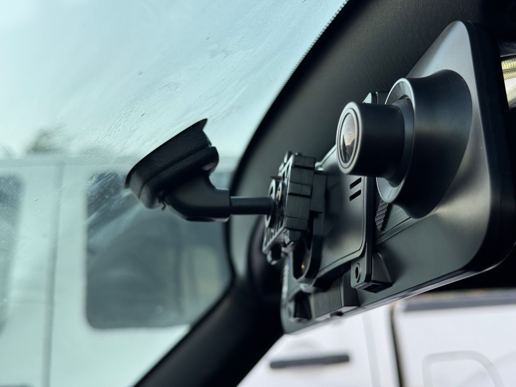 Yeah, had to do the same, the cable to the rear camera was bumping with the windshield frame and it was messing with the video, so had to lower where I attached the Wolfbox bracket to the OEM mount like 1/4" maybe, was enough to clear the cables and not cause any issues.