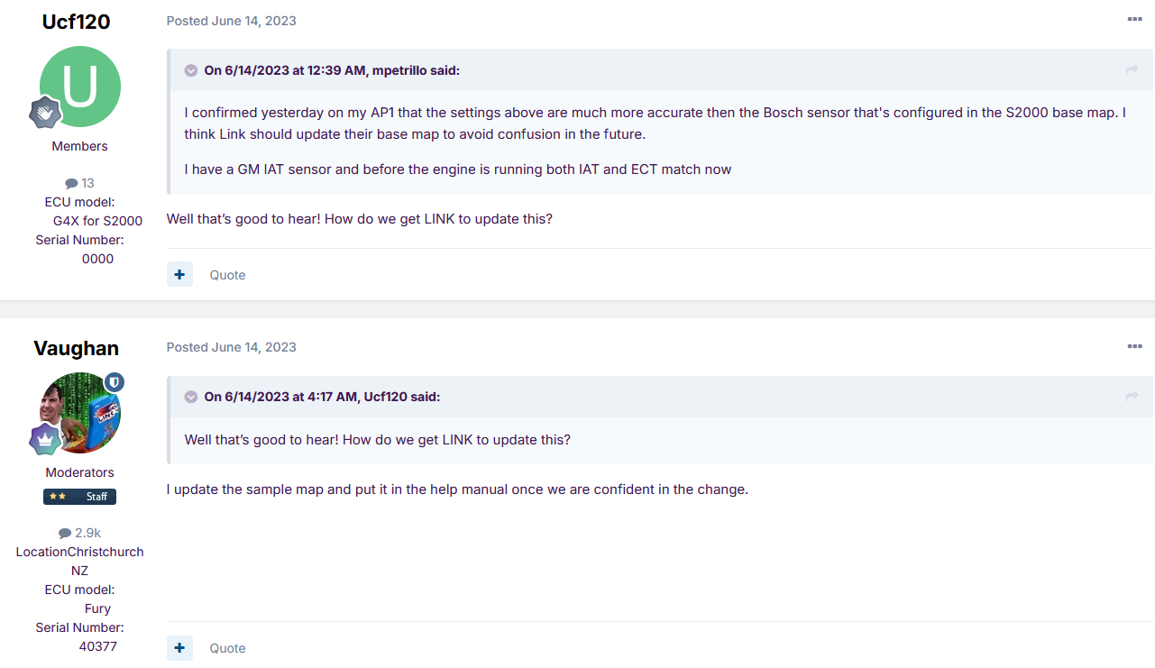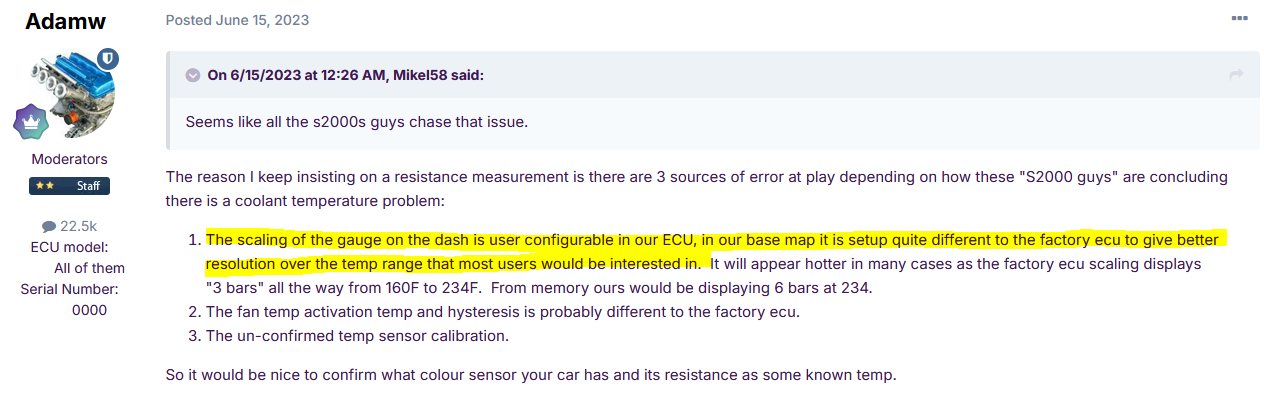 This was actually quite interesting to read, and may explain some of the differences in relation to coolant ECT readings between the factory Honda ECU and the LinkECU.