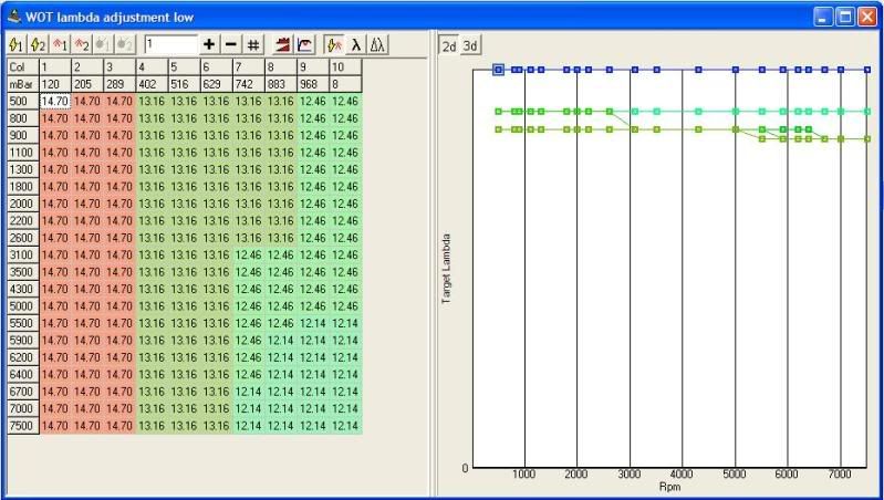 i like to aim for stoich from columns 1-6. start richening it out as it gets to column 7-8. try interpolating between breakpoints.