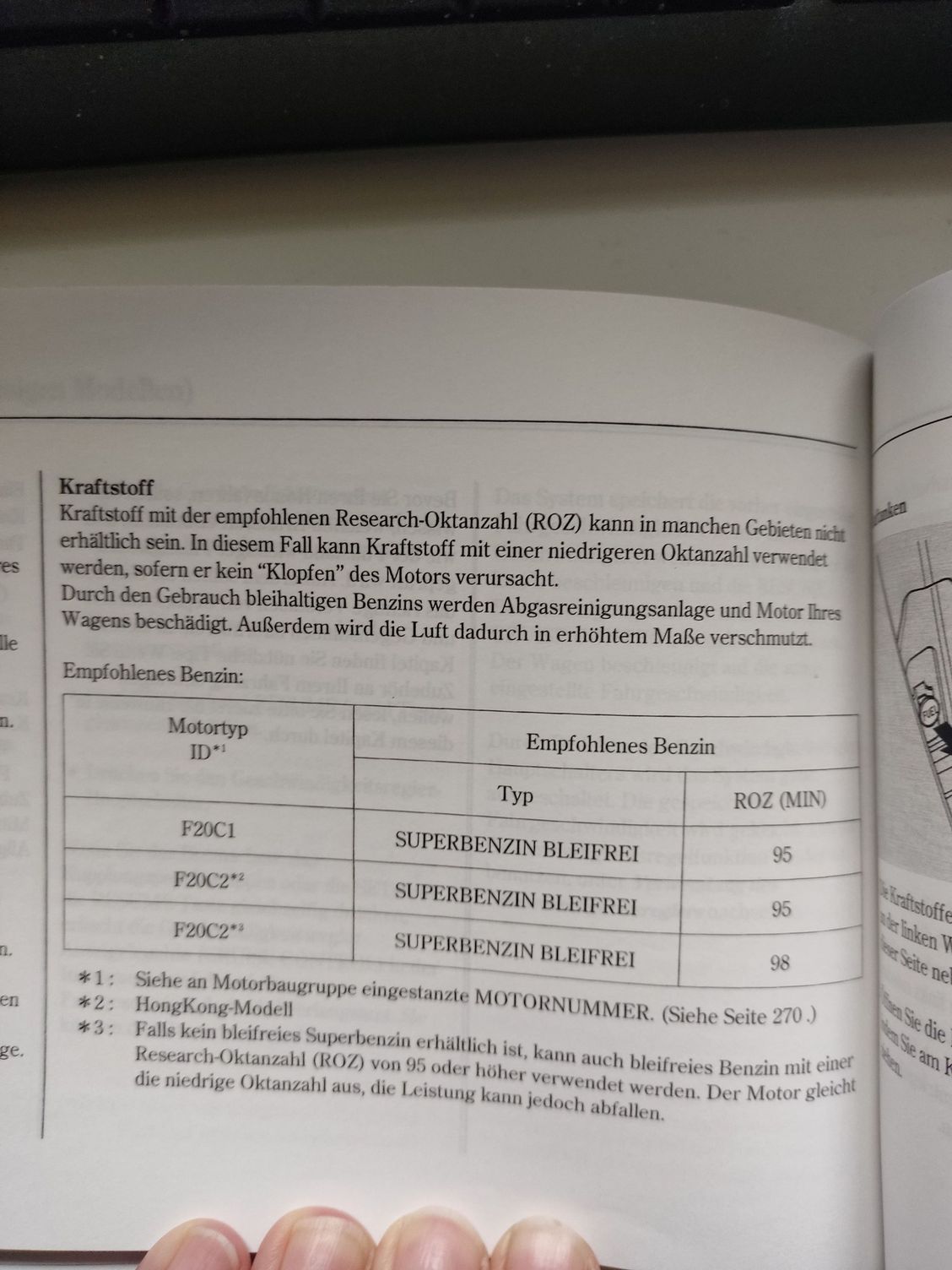 I'm hoping one of our EU or UK members can still find his owner's manual and tell us what RON octane is specified. I suspect it's a minimum of 95 RON which is the same as US91. There's a sticker inside the fuel door on North American cars too.