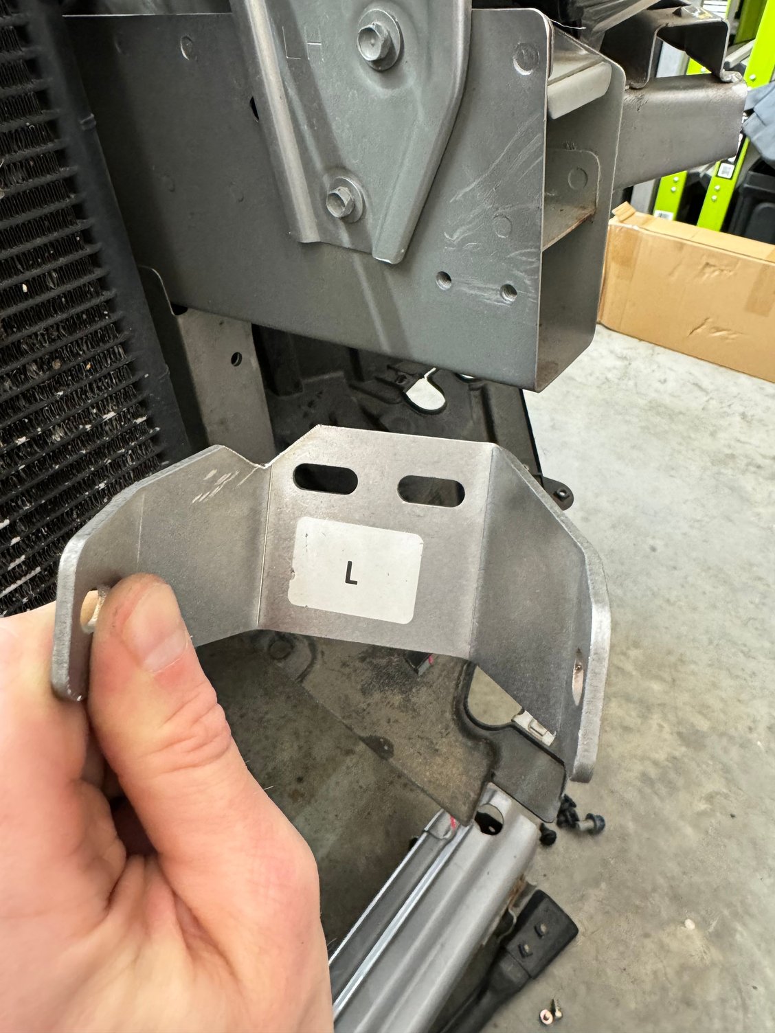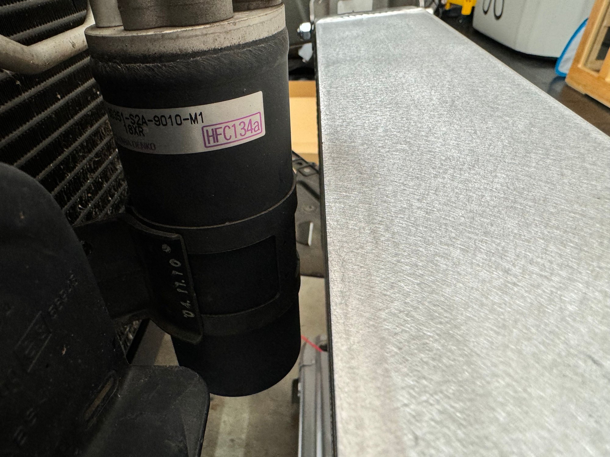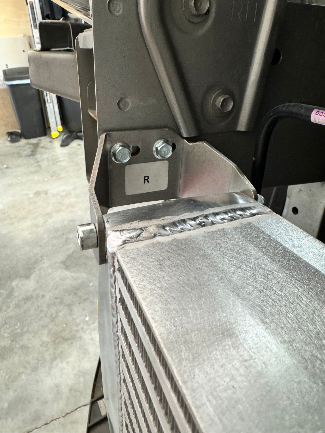 Modified bracket Modified bracket, based on where my frame would hit. Plenty of room between the AC dryer and intercooler.