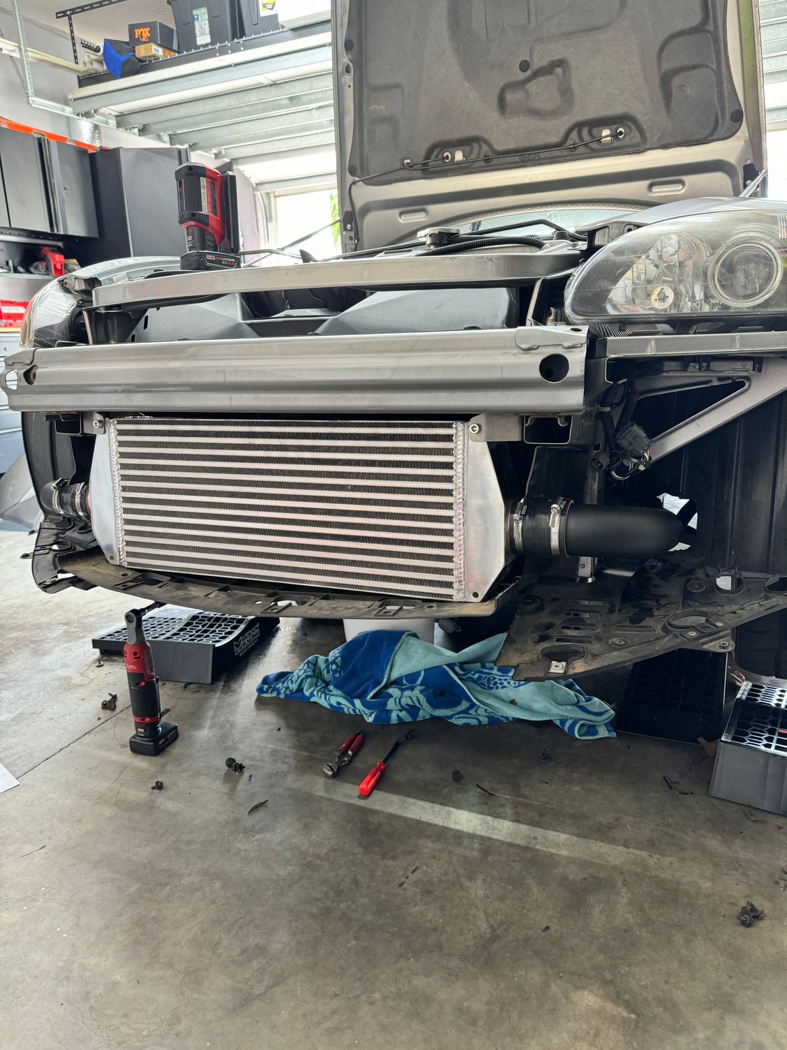 I worked a bit backwards. Since I was waiting on a few tools, I knocked out the intercooler install and cold side intercooler piping.