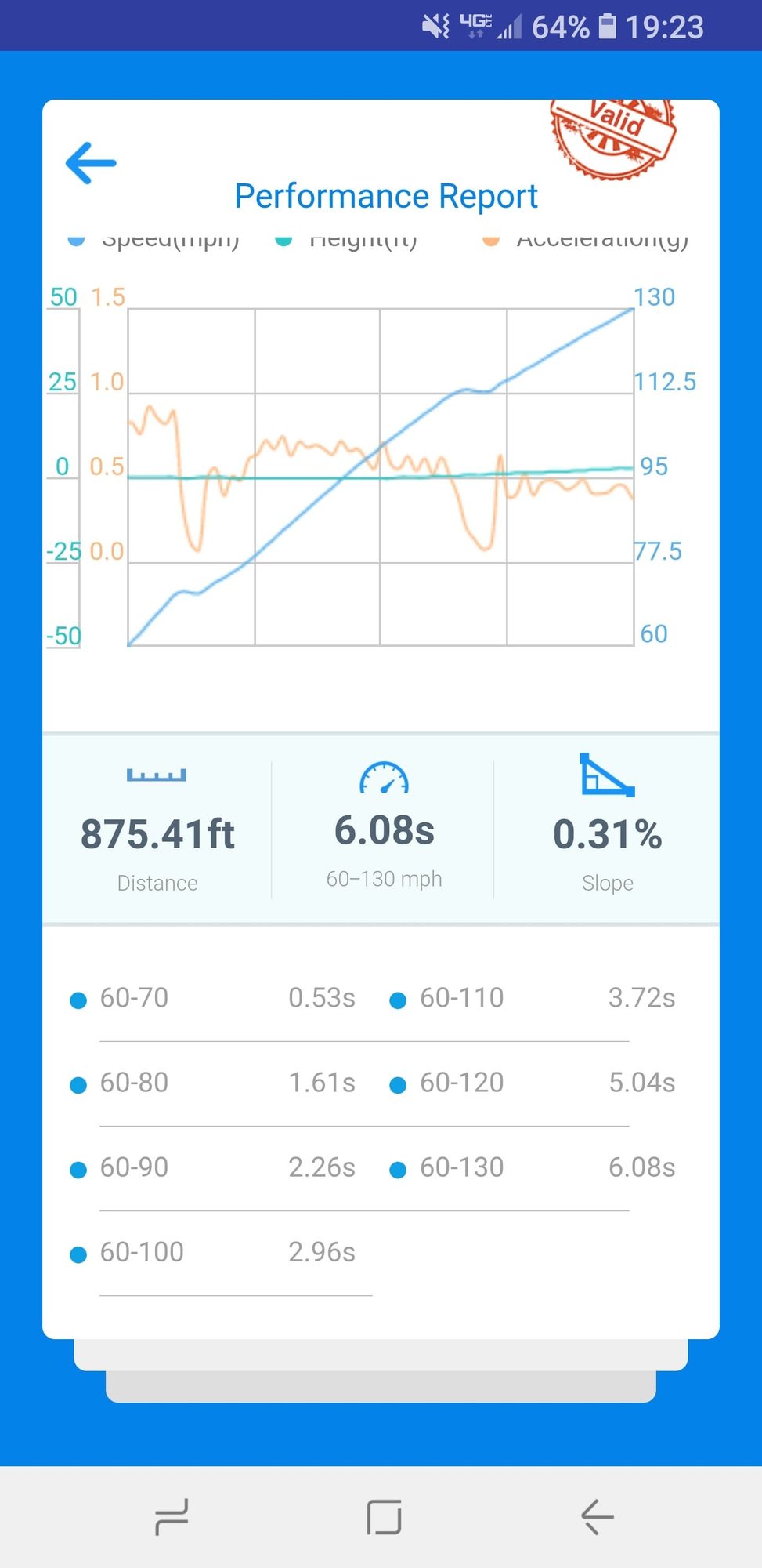 For entertainments sake, 4.99 is IMO pretty quick. However, I test drove a couple cars we built (R35's) over the last couple weeks and tested their 60-130 lol:
