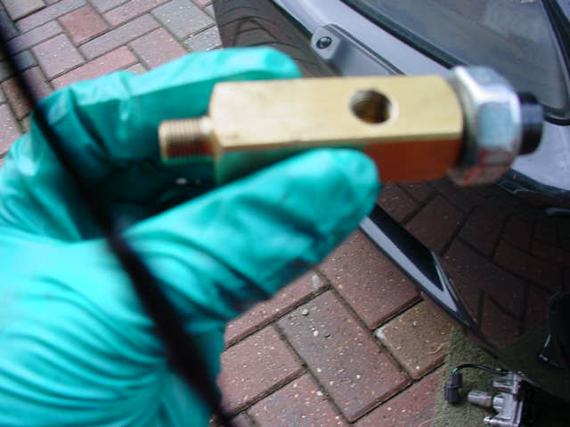 the male side of the fitting (1/8 BSPT) goes into the block in place of the stock oil sensor for the dummy lamp; the opposite female bung is also 1/8 BSPT to accept the oil pressure sensor
