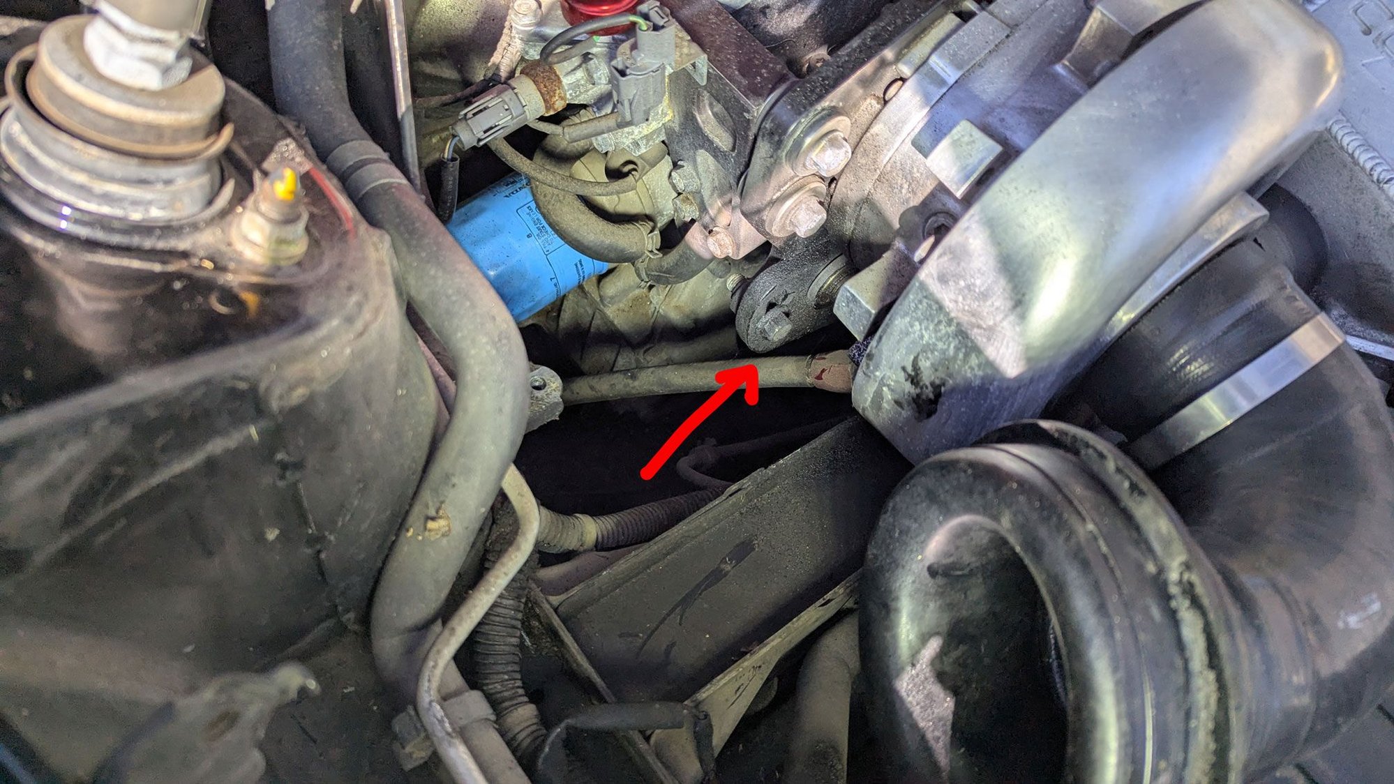 With the airbox out, I could clearly see the tensioner.