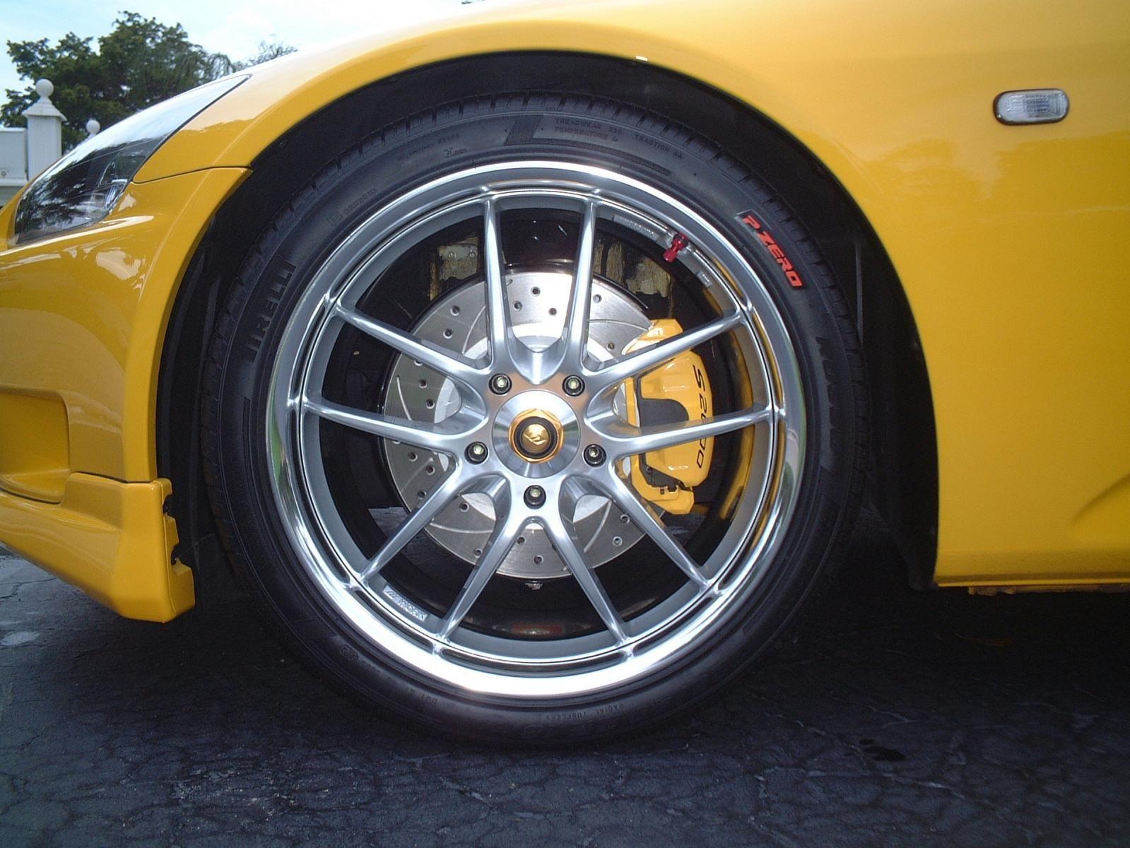 your whole set up is beautiful. i love the yellow calipers and your rotors look great too...not to mention those gorgeous rims. congratulations from a fellow spa yellow owner!