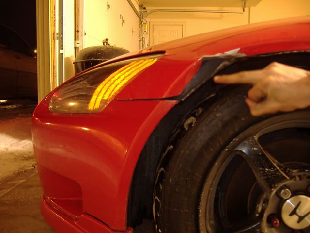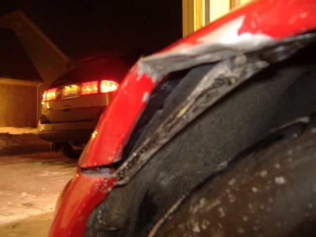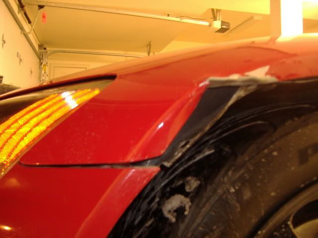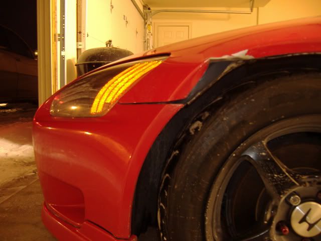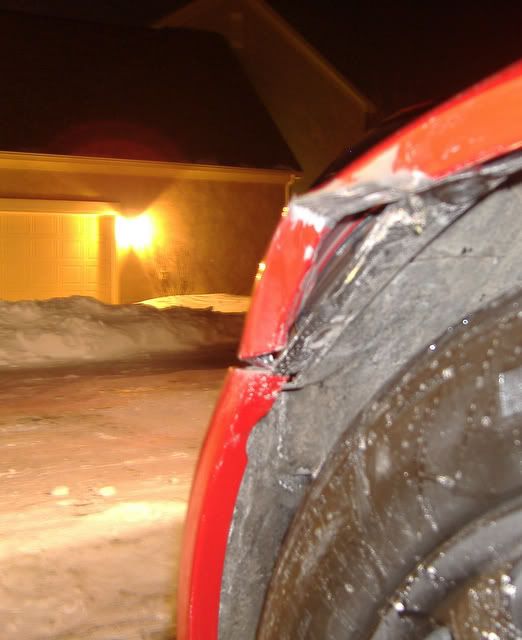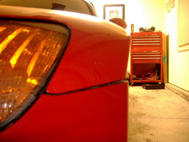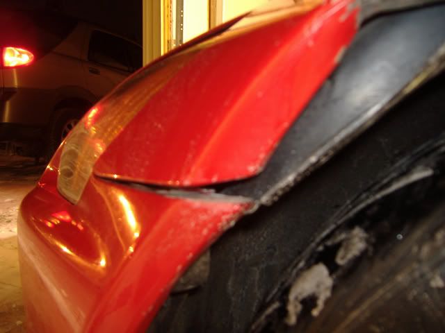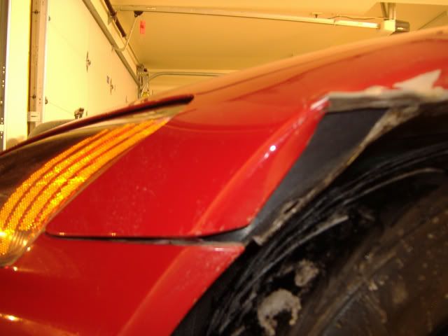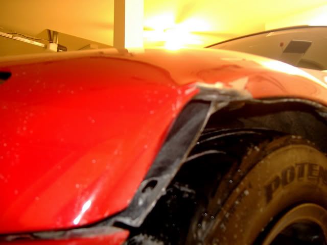 Today i had nowhere to park at work, so i parked over by our dumpsters (at NTB). Our parking lot gets alot of trafic and where my car was sitting it was hard to believe that anyone could side swipe the fender, well i had to leave to go and pick up a customer and drove our minivan, I left dor 15 mintues came back and the fender was all messed up! Im pissed, and im having my insurace agent come out tommorow to look at it. I called a friend who owns a body shop and he thinks it will cost 2500$ to fix which he will replace the fender and repaint the entire front end. Soooo im basically pissed!!!