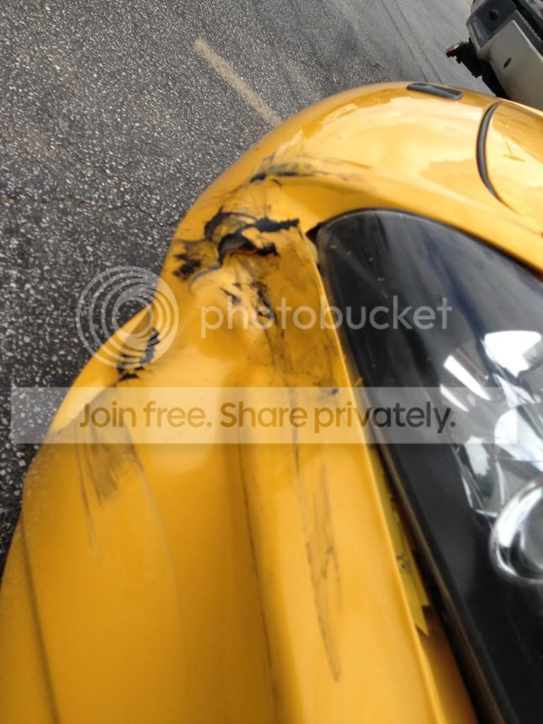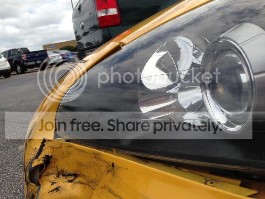 Welp it finally happened. Woke up at 6:30 this morning and detailed the car inside and out for a photoshoot at the beach. Got my morning coffee and then ran out to wal mart to get some valve stem caps. I parked in the empty area at the end of the row, to avoid getting hit but sadly lazy people still cut through parking spots instead of going to the very end of the row to do a U-turn. I was walking up to my car and a green F 150 came up from behind me and cut through the parking spots, at this point I was right behind my car popping the trunk, when the F150 turned at full lock to the right and hit my car. He dragged the entire side of his car against my front end. He ended up dragging my car to the right about 9-10 inches, my wheels were turned slightly to the right and my steering wheel was rotated to the right 180 degrees. Long story short the guy was a gentleman about it, and I got his info. Waiting for monday to roll around to get some estimates done. Sigh