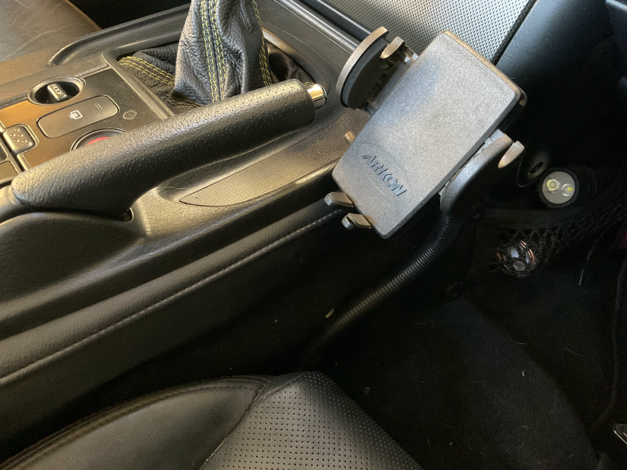 Also, it's nice having my phone right next to the wheel. I barely have to take my eyes off the road. It's so damn convenient. I have the Modifry phone mount that goes there, too. I use it to hold my OBDII scanner to monitor coolant temps on longer drives. I actually have a ton of extra Modifry stuff I plan to install in the next S I buy. One day.