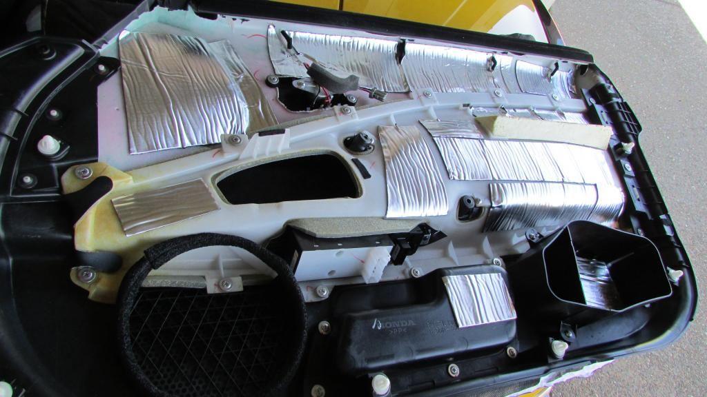 As far as the dynamat is concerned, you don't have to completely coat every inch to gain benefit. I used 3M Thinsulate (automotive material for Acura/Honda vehicles) which is very light and hydrophobic. Does a great job.
