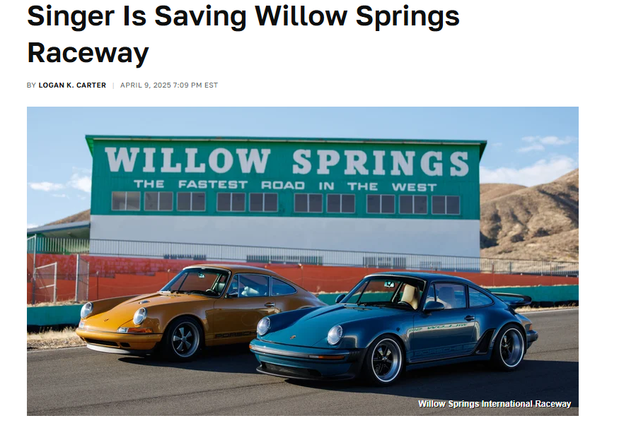 Willow Spring International Raceway (aka - the fastest road in the west) along with it's two smaller tracks - Streets of Willow Spring and Horse Thief Mile have been purchased by venture capitalists together with Singer listed as Co-Owners.