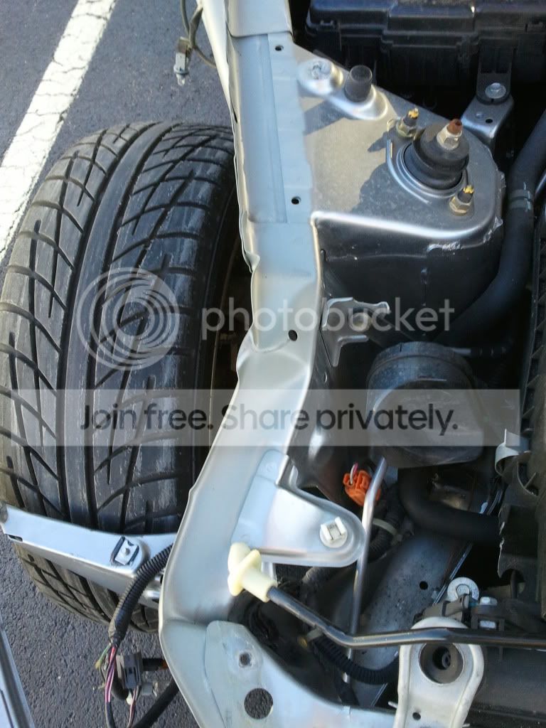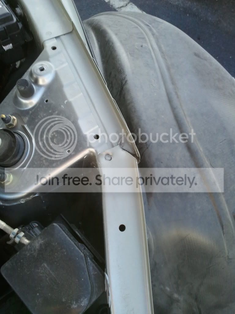 You can see here how badly the frame rail was twisted on the passenger side of the car: