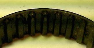 Here is the second gear syncro sleeve, you can see what I call the tooth ramp second gear side is facing up, there are only two teeth with ramps in this photo.