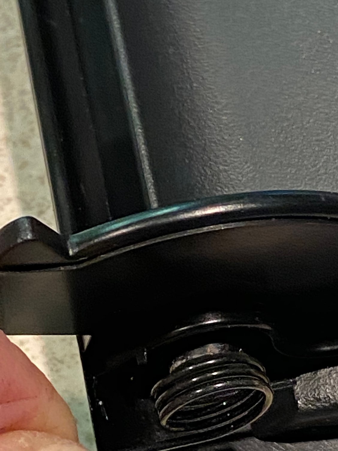 I managed to install the spring and the door in about 10 minutes once I figured out how the spring works. First thing to do is install the right hand door hinge pin. At this point the door is still movable. Now take the spring and install it on the door first with the short end of the spring down and forward. The next step is to hold the spring in place with your finger and start moving it in place with the longer end of the spring just resting on the inside bottom of the door. Now start moving it in place by continuing to hold the spring with your finger make sure the door is still a not lined up so that you can take a small flat screwdriver and push up on the longer end of the spring so that it slides into the slot on the door frame. At this stage all that is needed is to slide the door pin in place. continue to hold the spring with your finger until you have the hinge pin completely inserted.