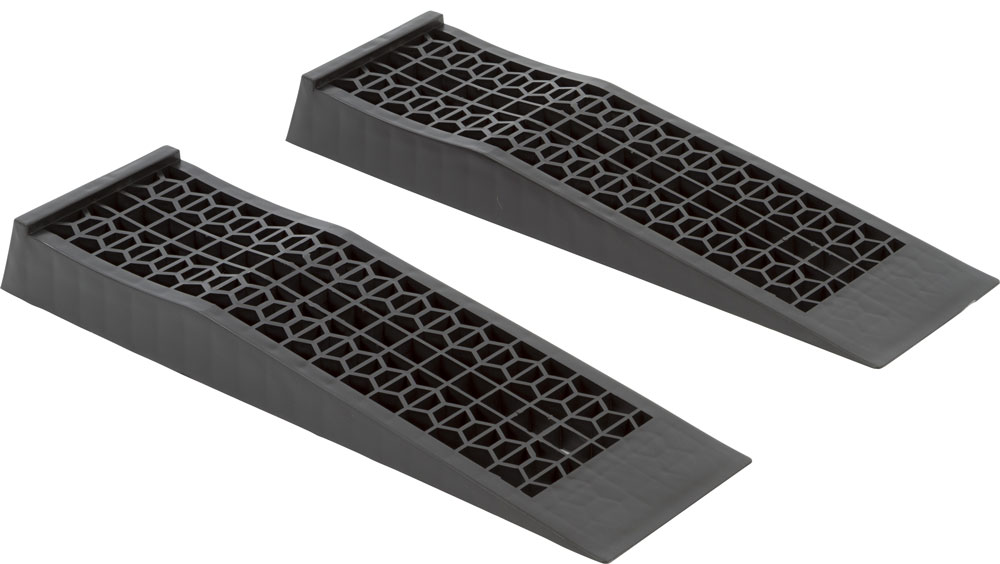 Sometimes I'll back the car onto rhino ramps, then jack up one side on the front to roughly level it. The car can only clear the ramps in reverse, so this is the quickest way to get it up for fluid changes.