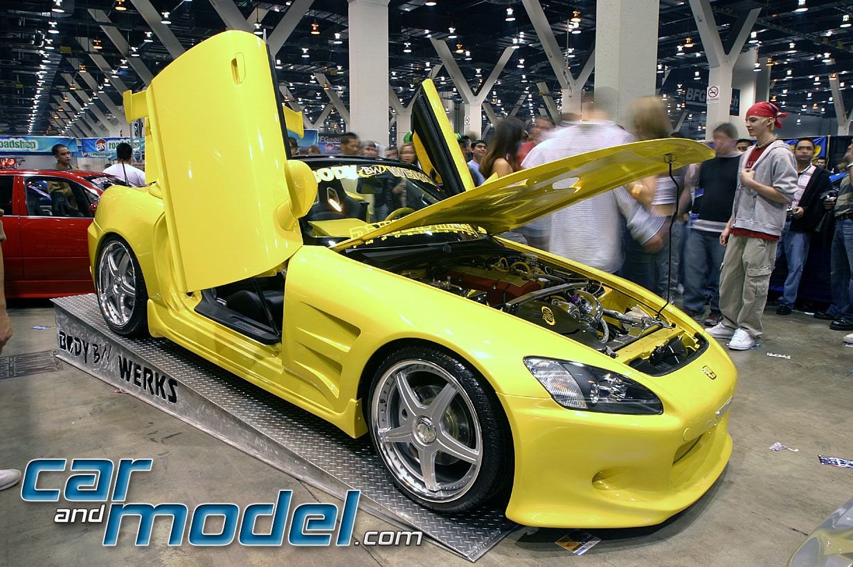That's a real mish-mosh of kits, but it seems to mesh quite well. I can't identify everything, although I know I've seen most of it before. What I CAN identify seems to be a Veilside hood, Veilside tonneau cover, Mugen rear bumper, and Lambo door conversion by Larry at BodyWerks. I like...