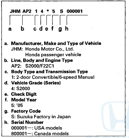 The serial number is the last six (6) digits (not 4) of the VIN and 0011 was repeated for every different market (note the example Canadian serial number above). US car 0011 was produced separately from Canadian car 0011 that year. or UK or EU or Japan. Only thing certain is 0011 was the 11th serial number issued that year in that market. When it came off the assembly line isn't part of the data. The VIN was stamped on the firewall inside the engine bay of my car before it was painted so any delay in production could have easily moved it out of sequence if there ever was an attempt to manufacture them in strict numerical order.
