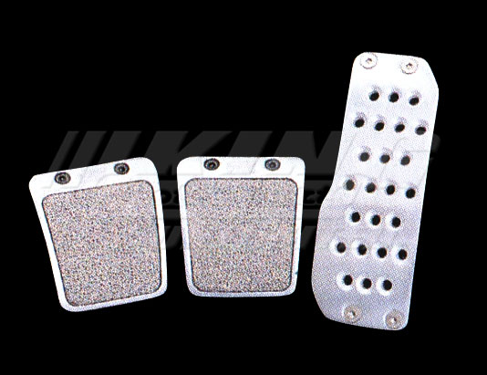 In mass-production vehicles, the accelerator, brake, and clutch pedals all have the same type of rubber surface. However, in formula machines, only the surfaces of the brake and clutch pedals are made non-slip. This is because in racing where more demanding footwork is required, the accelerator requires exactness, but the brake and clutch require grip. Mugen believes that this also holds true for sports driving, in which nimble footwork is needed. With Mugen sports pedals, the accelerator has a wide front and rear with a buffed surface finish, while the brake and clutch pedals are small pedals with a nickel-chrome blown metal non-slip surface.