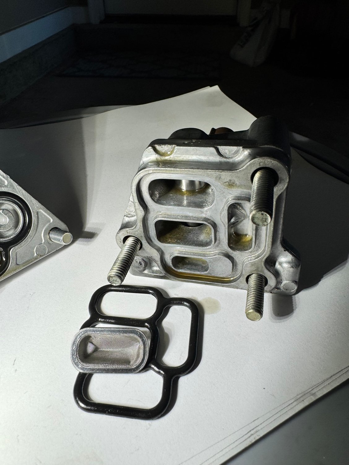 Pulled the VTEC solenoid and it seems to look good. There may have been a tiny bit of aluminum in the screen (from cam caps). Planning to replace gaskets/screen and reinstall