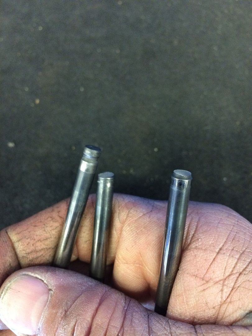 This was off of a customers car. Came in running. Valves almost dropped. Rocker was touching retainer. Rocker should only be touching valve tip. 2 tips were missing. 2 broken valve tips. Multiple cracked retainers.