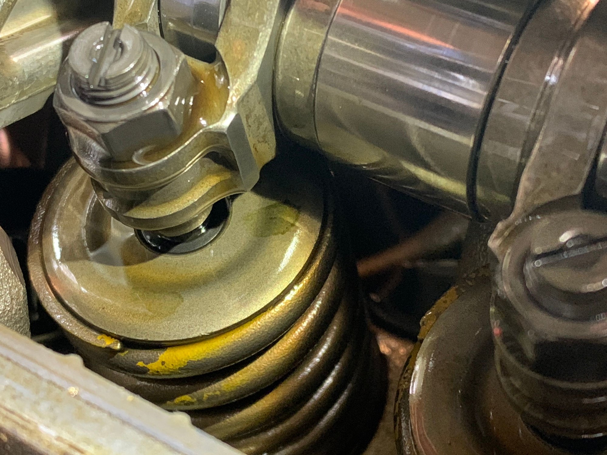 So when a retainer is cracked it tends to walk up the cotter giving the valve and cotters a sunken look, correct? But the cracks begin typically at the bottom center of the retainer, where it's hardest to see. As I'm picturing it in my mind, I don't see it unlikely for there to be a crack that's just starting and is therefor not visible through the springs and also not showing obvious signs. I'll pop my valve cover off to get a better idea, should make more sense then. Thank you for the replies, everyone. I know we're beating a really old dead horse but someone's going to read this lol