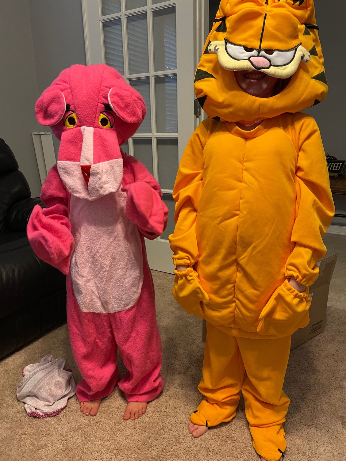 Donna use to make all the costumes for our kids when they were growing up. Some of the good ones got passed on. Here are two she made - Pink Panther and Garfield. My son got to use them for his boys. He just forwarded them down to FL for my youngest grand daughters who got a big kick out of them even if they are a little too big for them.