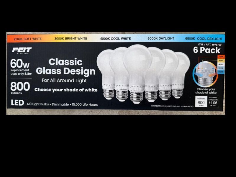 I bought these LED bulbs at Costco and I like them because not only are they dimmable, but they have an adjustment slider on the base that controls the shade of "whiteness" from 2700K to 6500K. And they only use 8.8 Watts as a 60 Watt replacement.