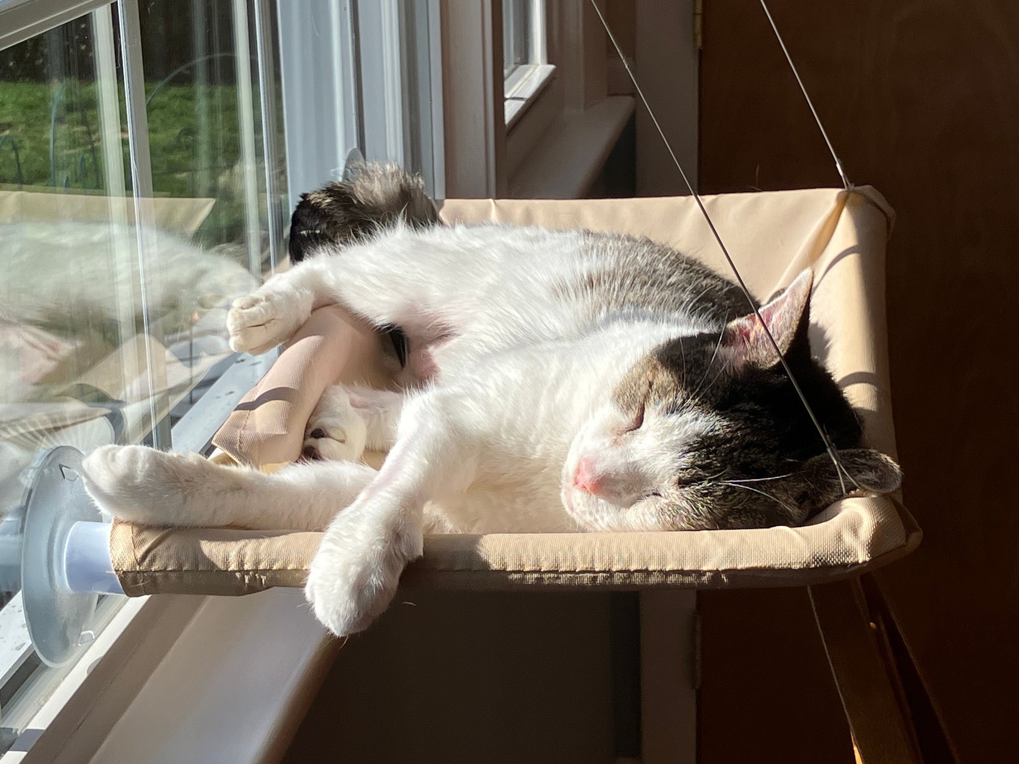 I laid there half asleep petting scratching her, that is until chance decided to join the party.