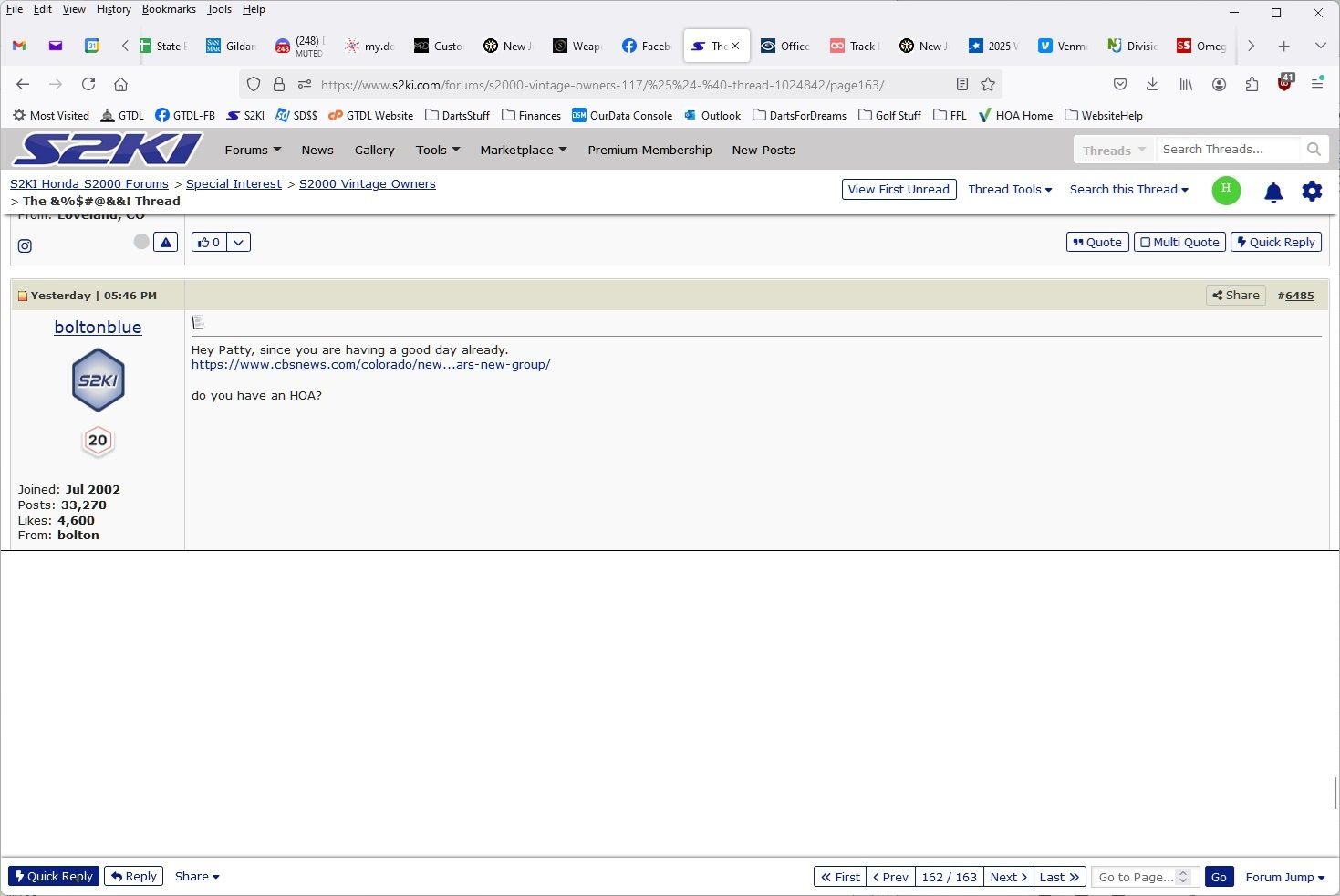 I've noticed with FF recently that when I'm scrolling through threads, sometime they just lock up. They'll recover in 5 seconds or I'll get a "FF has detected the page is slow, do you want to stop it" message.